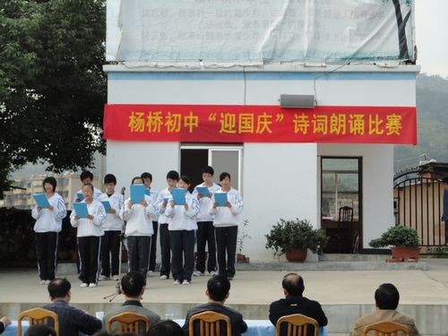 近日,楊橋鎮團委為迎國慶、慶國慶與楊橋初中聯合舉辦了一場名為“迎國慶,中華詩詞進校園”朗誦比賽,來自全校15個班級的150名選手參加了朗誦比賽。圖為選手們正在臺上朗誦比賽的場景。(江立新)