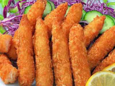 在需要油炸的食物外裹層淀粉。給原料掛上糊后,糊粉受熱會(huì)立即凝成一層保護(hù)層,使原料不直接和高溫的油接觸。這樣就可以保持原料內(nèi)的水分和鮮味,并減少營(yíng)養(yǎng)成分流失,制作的菜肴能達(dá)到松、嫩、香、脆的目的。