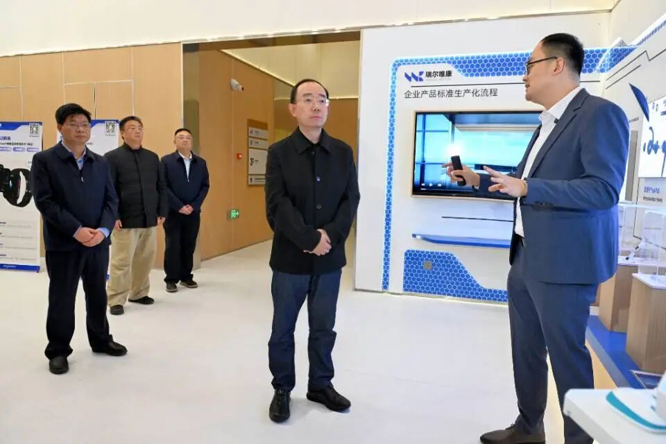 入駐雙生未來科技城的瑞爾唯康,專注腦科學(xué)領(lǐng)域的疾病診斷監(jiān)測和治療類產(chǎn)品的研發(fā)銷售。孟景偉走進(jìn)企業(yè)展廳和車間,了解產(chǎn)品技術(shù)、發(fā)展規(guī)劃等情況,鼓勵企業(yè)持續(xù)推進(jìn)技術(shù)和產(chǎn)品創(chuàng)新,扎根安慶、做大做強(qiáng)。他強(qiáng)調(diào),有關(guān)部門要精準(zhǔn)對接企業(yè)需求,強(qiáng)化人才招引、場景應(yīng)用等服務(wù),助力企業(yè)發(fā)展。